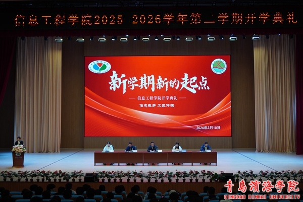 为总结过往、展望未来,明确新学期奋斗目标,2026年3月10日晚,信息工程学院在学校礼堂举行2025-2026学年第二学期开学典礼。典礼由院长助理孙贺主持,院长刘春强、教学干事杨学凤、学生干事孙建波、教师代表朱烨老师出席典礼,学院全体师生共同参加。